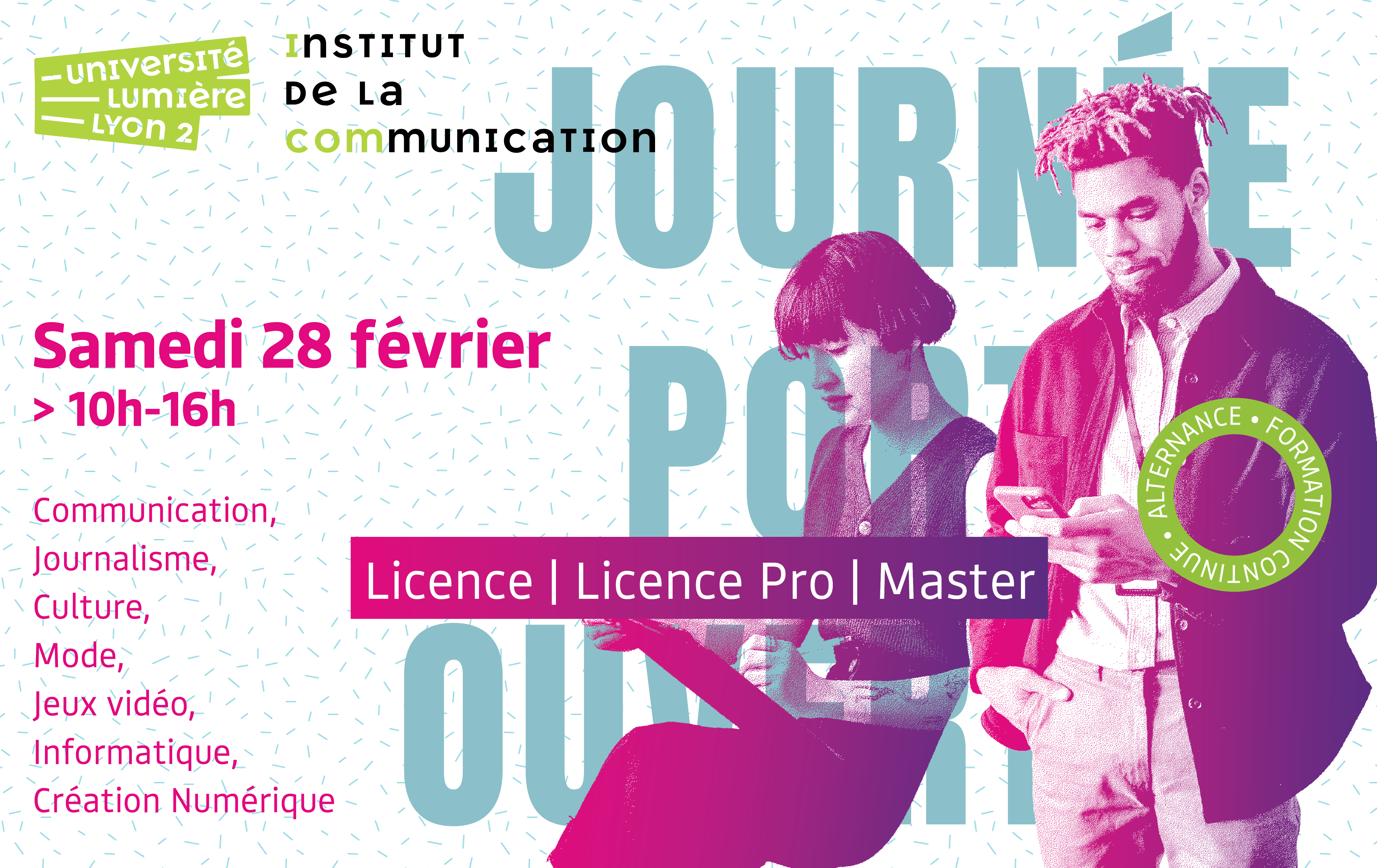 À l’occasion de la journée portes ouvertes de l’Université Lumière Lyon 2, l’Institut de la Communication (ICOM) invite les futurs étudiants, étudiantes et leurs familles à venir découvrir ses formations, ses débouchés et son environnement d’études.
