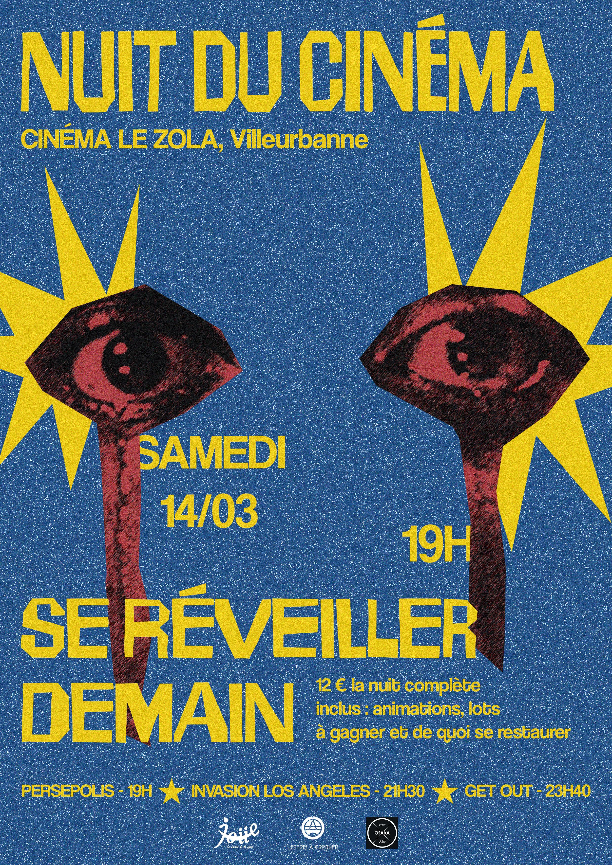 Les étudiants et étudiantes du Master DPACI vous invitent à participer à la Nuit du Cinéma le samedi 14 mars à partir de 19h au Cinéma Le Zola à Villeurbanne.